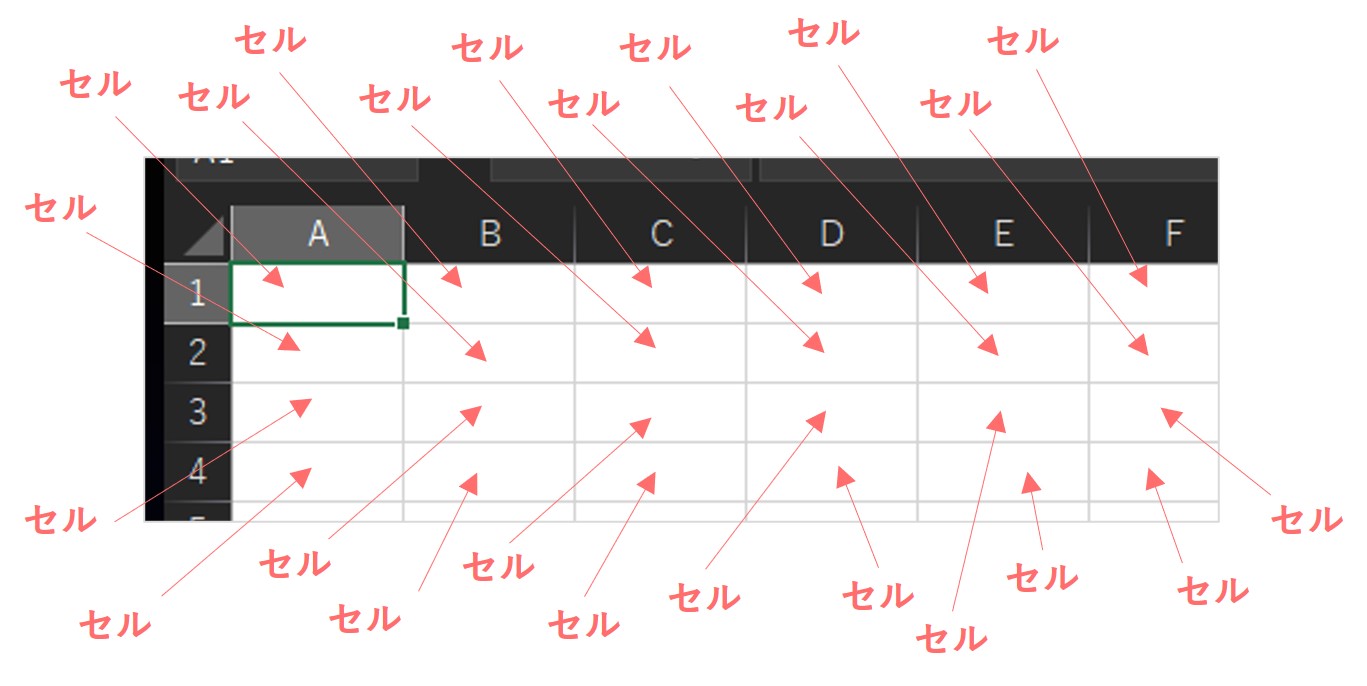 下の画像の赤でぬりつぶしているところは、全て"セル"!